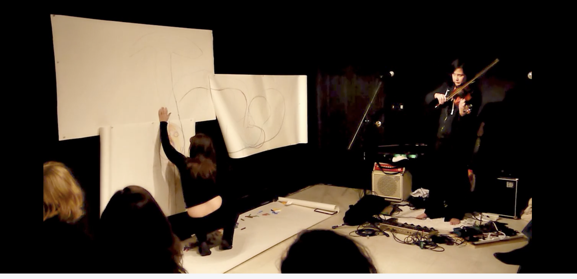 I have it seems revisited translations and interactions of sound and the body, sound and memory, or trying to understand how sound moves or is lost in the body many times. I have a link here to a video from long ago when Clara Kebabian and I created the Quickest Path to Earth interactions. Clara would create improvisational compositions usually with violins, violas, guitars, (both plugged in and acoustic), loops and synths, sometimes taiko drums. Since I hadn’t heard these compositions before as I was drawing to them I was struggling as a human body to comprehend each sound, find connections, translate a movement, sometimes consciously, sometimes unconsciously. It is possible during this work to completely lose sense of time, as the music is not patterned the way we often hear it these days. At times I was so focused on the sensation of the music that I completely lost all concept of time. It would be very disorienting to suddenly realize this and not know if I had been drawing a line for a minute.. or an hour? or how many hours? Did my body feel like it had been standing an hour? Had the visitors to the gallery left and I was drawing now in an empty space? The actual state of physical receptivity to the music was wonderful, but the re-entry is harsh and disorienting.